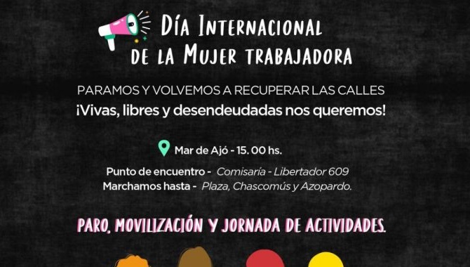 En el marco del Día Internacional de la Mujer Trabajadora, mañana martes 8 de marzo habrá un paro, movilización y jornada de actividades en el Partido de La Costa.