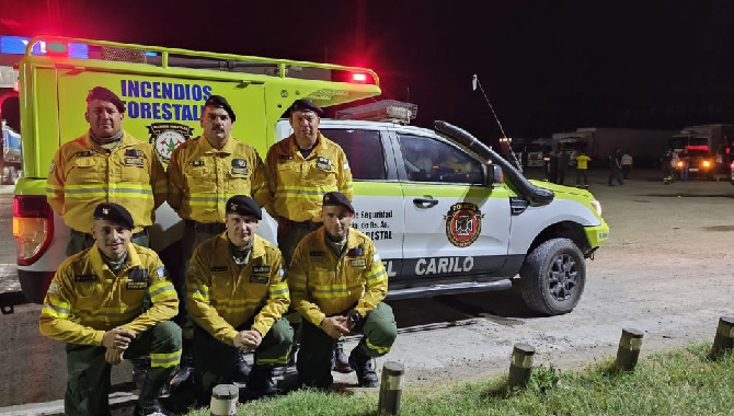 Integrantes de la Brigada Forestal de La Costa, compuesta por bomberos de Costa del Este y Cariló, viajaron este lunes para sumarse al operativo de emergencia. El fuego ya consumió más de 8.000 hectáreas y un centenar de viviendas