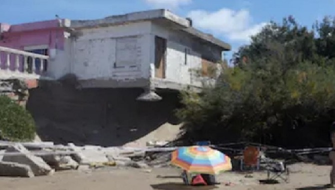 En referencia al derrumbe ocurrido en la vivienda de Mar del Tuyú, sobre la calle 64, la situación del inmueble, como tantos otros, arroja un alto riesgo tanto para sus propietarios como para los veraneantes de esta estrecha playa.