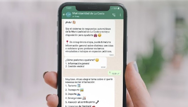 Además, los vecinos y vecinas del Partido de La Costa pueden acceder a la herramienta “Hola Muni”, un chatbot que funciona a través de WhatsApp y acerca los servicios del Municipio a toda la comunidad.