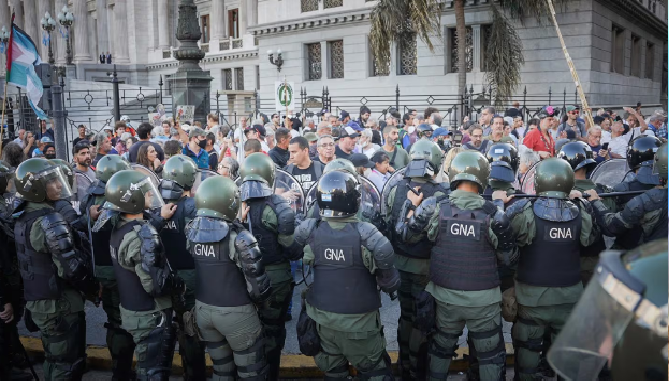 En numerosas oportunidades, los diputados de Unión por la Patria denunciaron en la Cámara baja el “impresionante operativo de seguridad y la militarización de las calles ante las marchas de los jubilados de los días miércoles”.