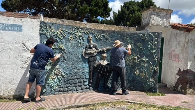 En el marco del programa municipal Agite, dependiente de la Dirección General de Inclusión Artística, el equipo de “Muraleros” lleva adelante la puesta en valor del “Mural del Tango” que se encuentra ubicado en la “Plaza del Tango” de Santa Teresita, en Av. 41 y 10.