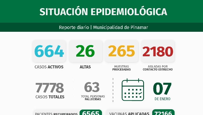 Pinamar: Informe COVID 19 con datos recibidos al 7/01/22