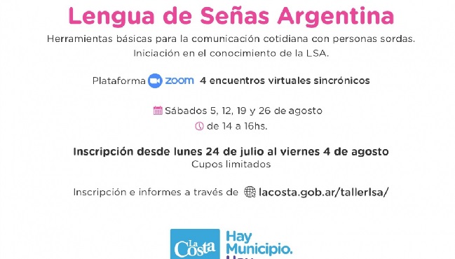 Los interesados tienen tiempo para inscribirse hasta el viernes 4 de agosto a través de lacosta.gob.ar/tallerlsa. Cabe destacar que los cupos son limitados.
